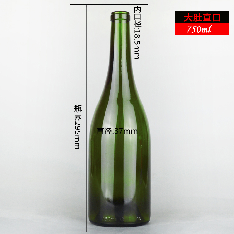 750ml 大肚直口红酒瓶 葡萄酒玻璃瓶