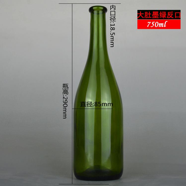 750ml 大肚翻口绿红酒瓶 葡萄酒玻璃瓶