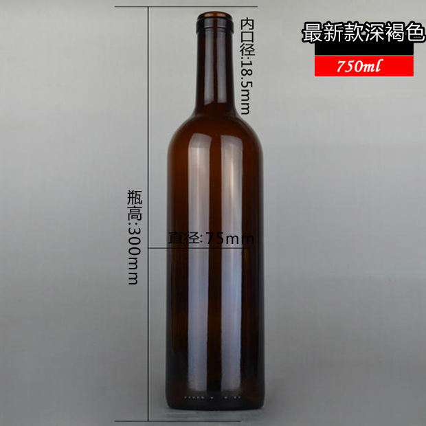 750ml 新款深褐色红酒瓶葡萄酒玻璃瓶