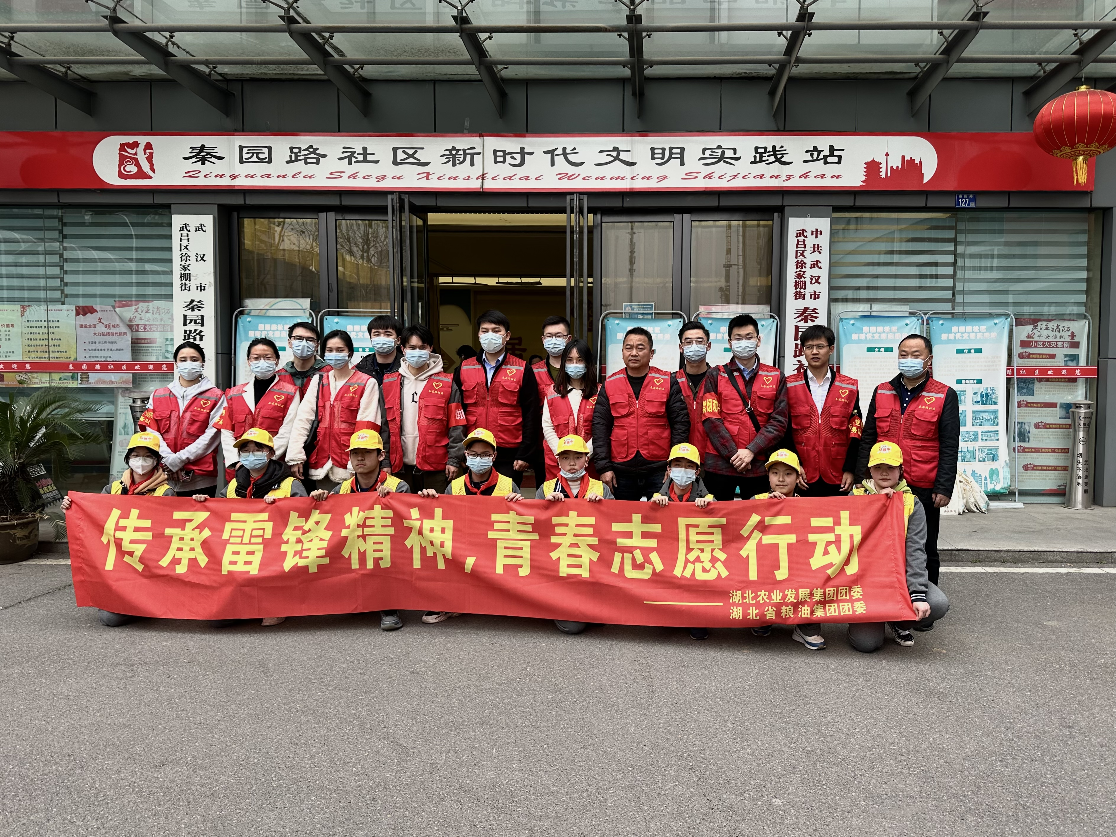 集团及省粮油集团、农发实业集团、农发投资公司团员青年联合秦园路社区、湖北大学附属中学开展“传承雷锋精神 青春志愿行动”志愿服务活动,以清理单元楼道牛皮癣、向居民发放电信反诈宣传单及文明创建调查问卷等形式践行雷锋精神。