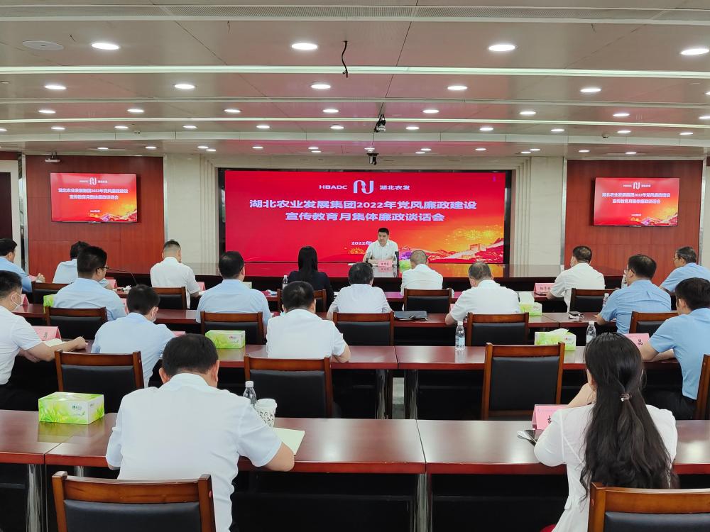 8月31日,根据湖北农发集团2022年度“党风廉政建设宣教月”活动统一安排部署,集团纪委组织对2022年新担任集团各部门负责人、二级子公司班子成员及三级子公司主要负责人等47人开展集体廉政教育谈话,提醒、教育、督促新任领导干部切实增强“四个意识”,坚定“四个自信”,坚持“两个确立”,做到“两个维护”,在集团高质量发展征程中建功立业。
